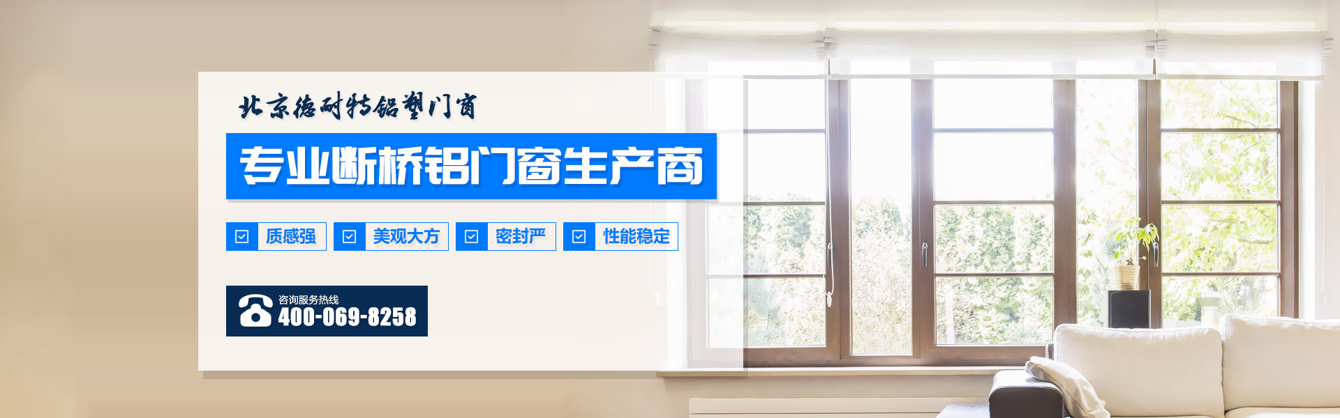 北京德耐特铝塑门窗有限公司 2009年成立,具有国际水平的60条生产线,年产铝型材18万吨,产品多、品种齐,2011年为了方便内地客户,公司生产的门窗,五金、型材全部采用国际技术,应用科学的工艺处理技术成材,并通过电脑机械加工制造完成,使门窗使用起来 质感强、美观大方、性能稳定、密封严,******程度保证产品卓越,把门窗的实用性和艺术性完美结合......